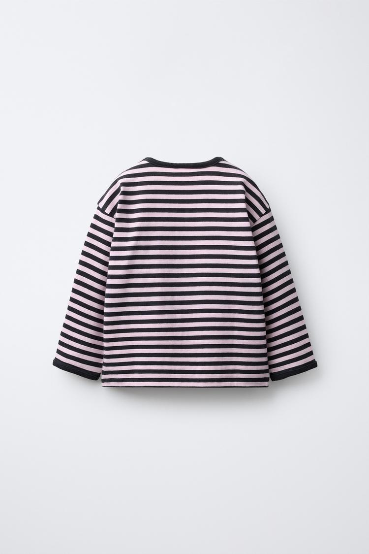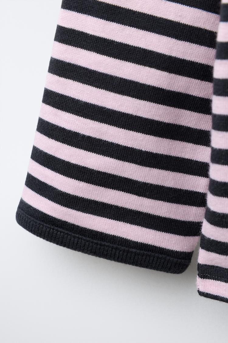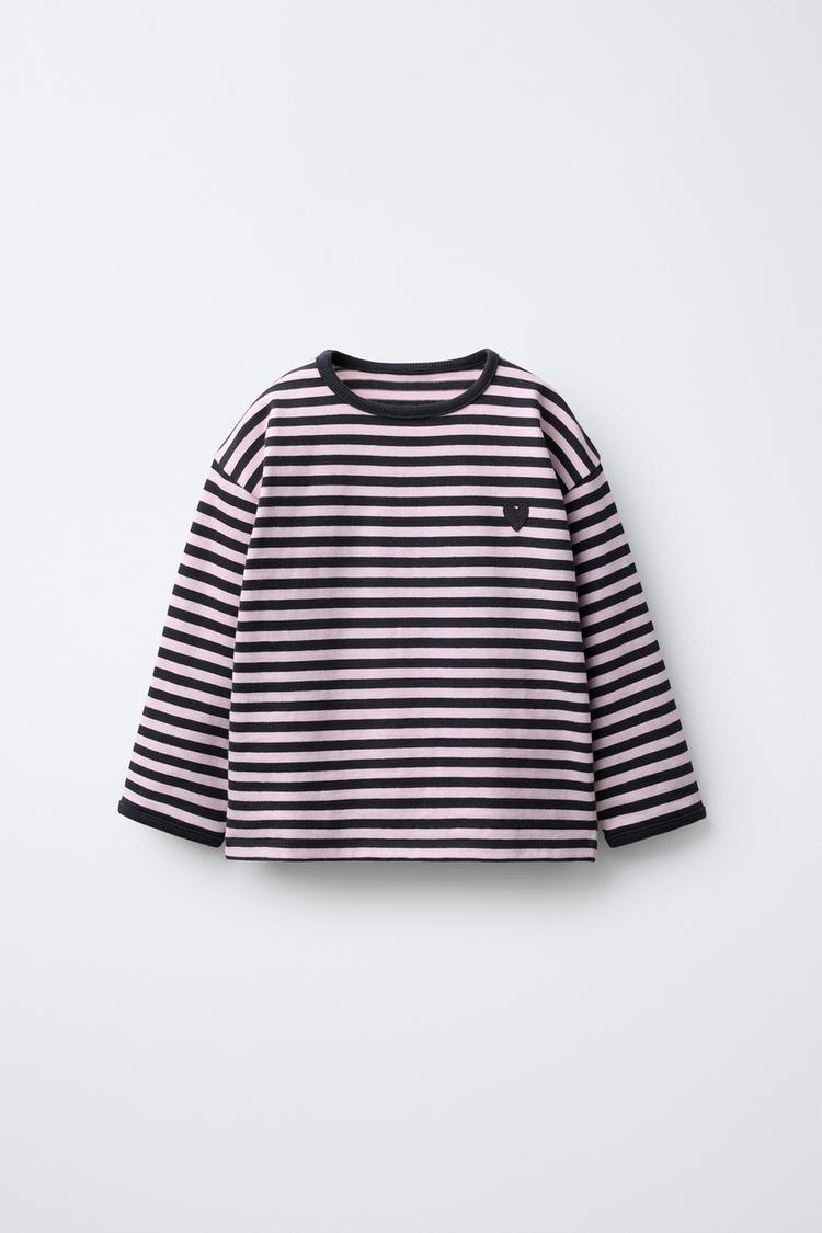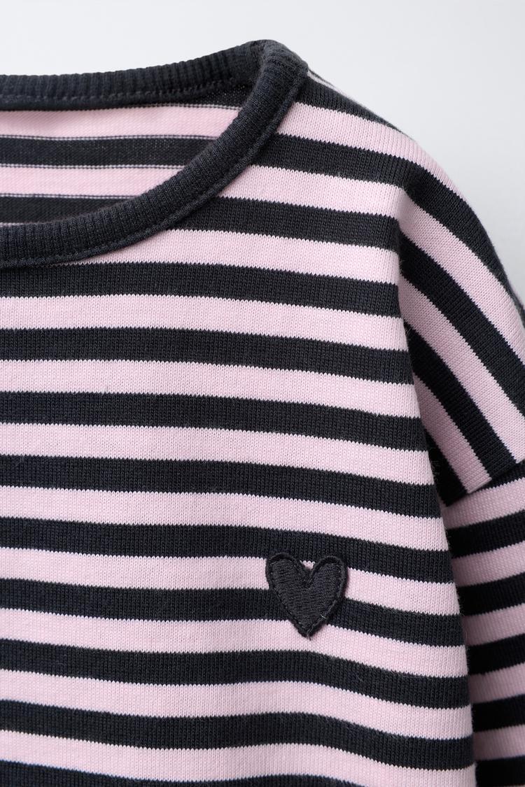 ZARA ТРИКОТАЖНАЯ ФУТБОЛКА В ПОЛОСКУ С НАШИВКОЙ «СЕРДЦЕ», СВЕТЛО-УГОЛЬНЫЙ