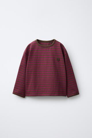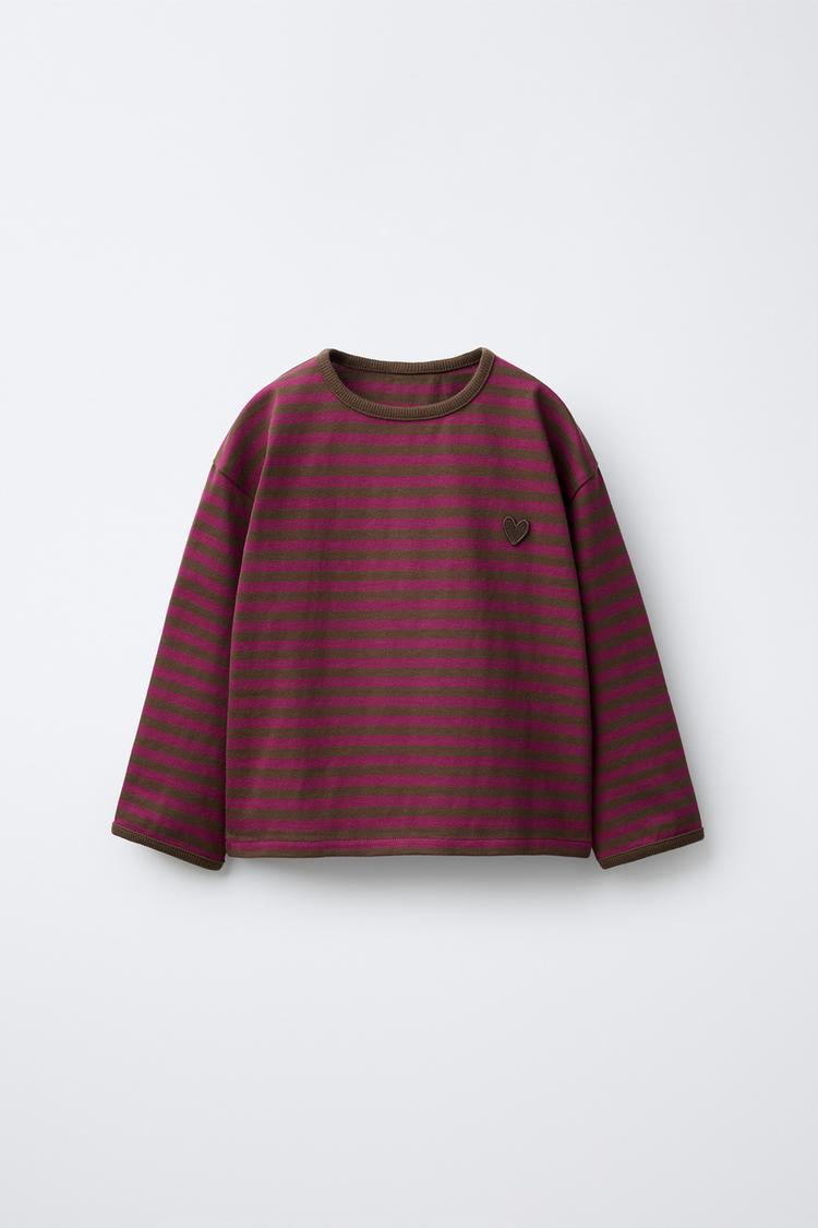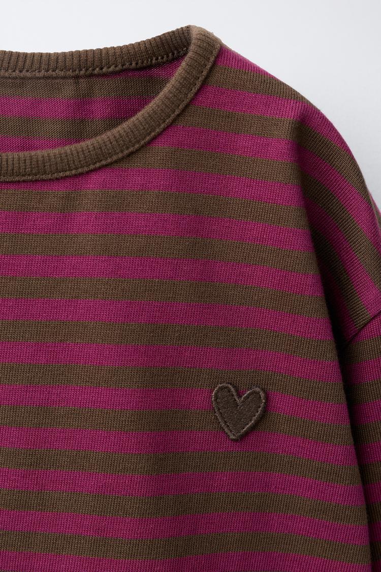 ZARA ТРИКОТАЖНАЯ ФУТБОЛКА В ПОЛОСКУ С НАШИВКОЙ «СЕРДЦЕ»,ШОКОЛАДНЫЙ
