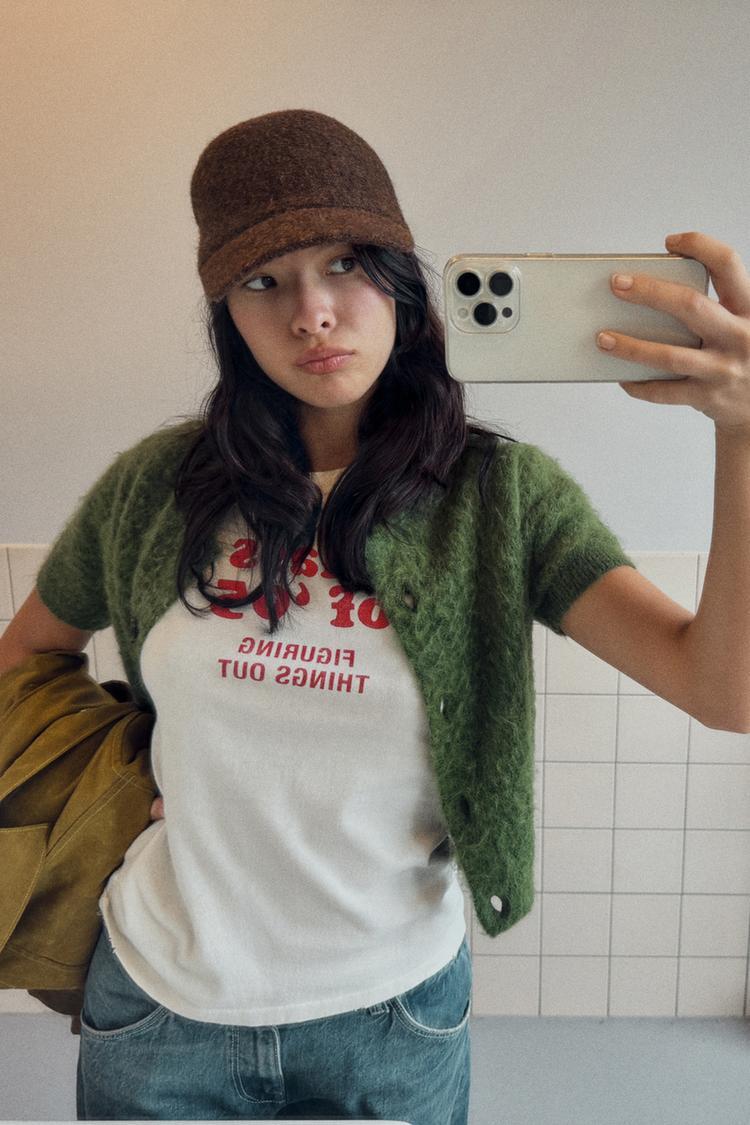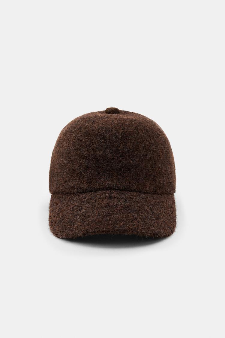 ZARA ТРИКОТАЖНАЯ КЕПКА С ЗАВЯЗКАМИ, КОРИЧНЕВЫЙ