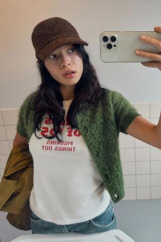 Кепка с козырьком из смесовой ткани с 5% шерсти. Регулируется с помощью завязок сзади.