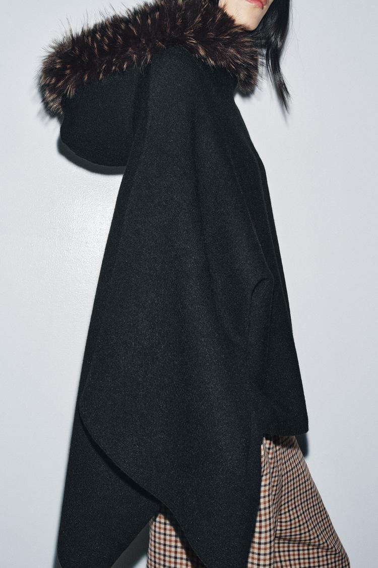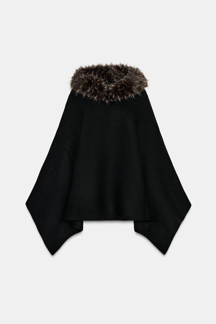 ZARA ТРИКОТАЖНАЯ НАКИДКА С МЕХОМ, ЧЕРНЫЙ