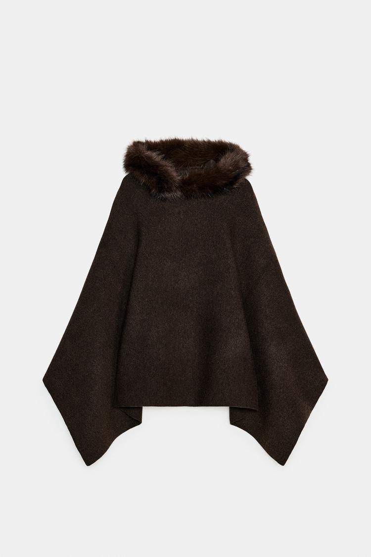 ZARA ТРИКОТАЖНАЯ НАКИДКА С МЕХОМ, КОРИЧНЕВЫЙ