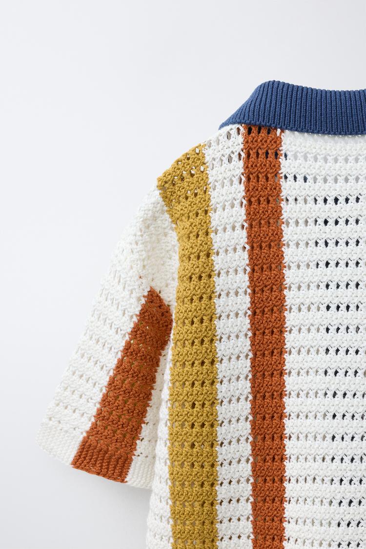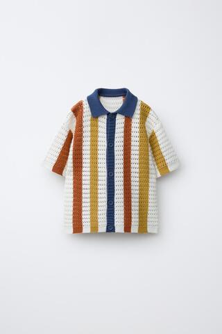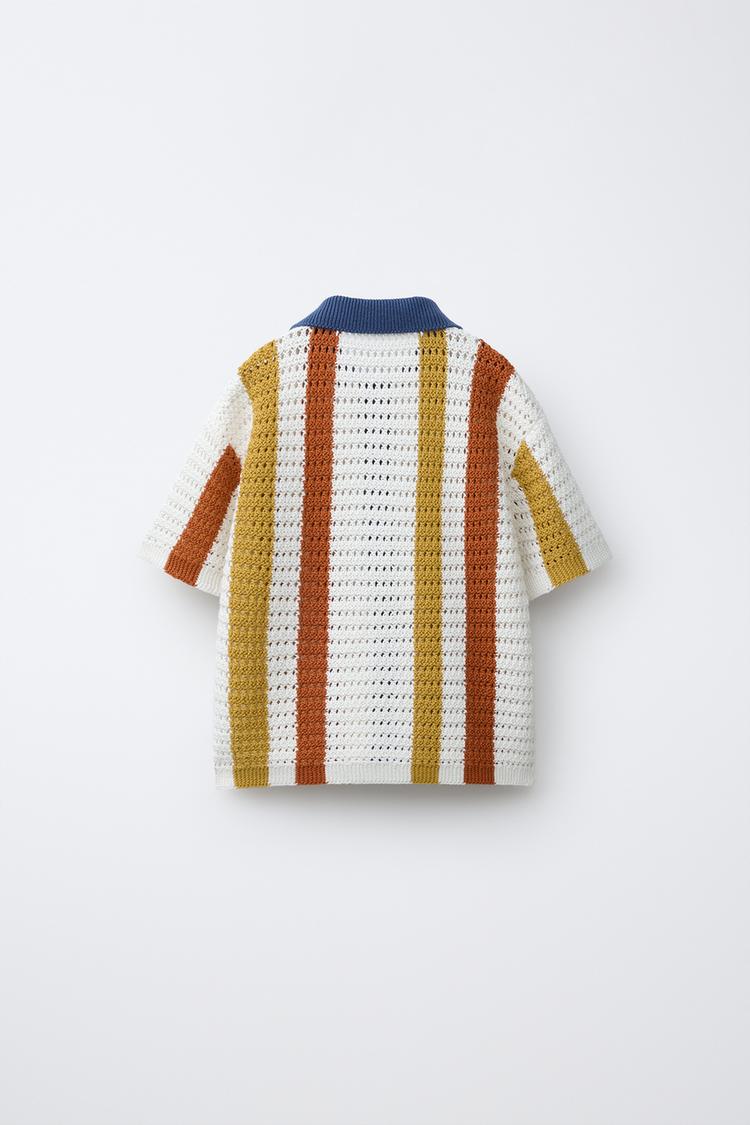 ZARA ТРИКОТАЖНАЯ РУБАШКА В ПОЛОСКУ, ТЕМНЫЙ РЫЖЕВАТО-КОРИЧНЕВЫЙ