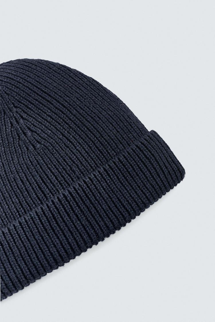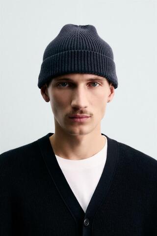 ZARA ТРИКОТАЖНАЯ ШАПКА ИЗ ХЛОПКА И КАШЕМИРА, МОРСКОЙ СИНИЙ