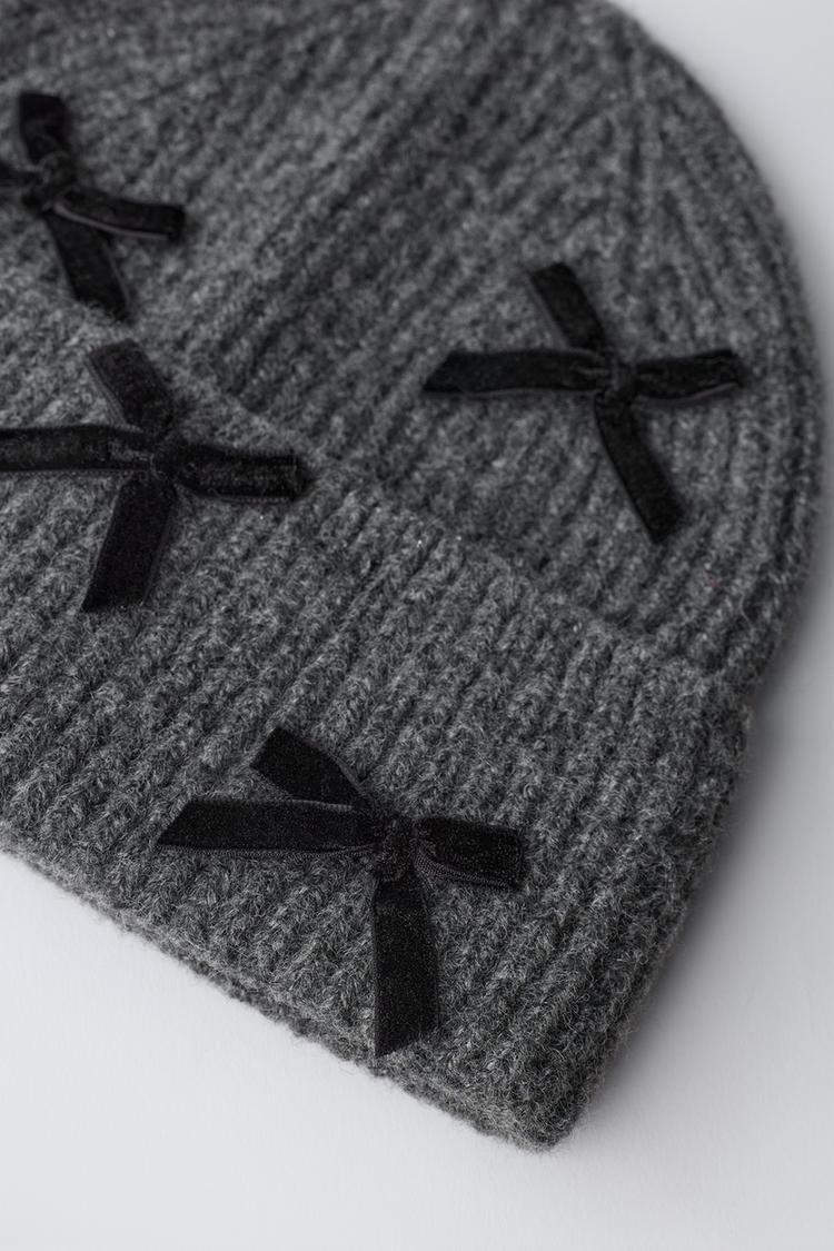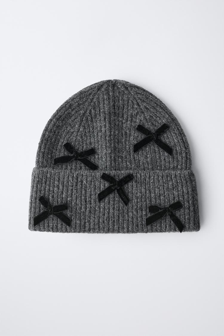 ZARA ТРИКОТАЖНАЯ ШАПКА С БАНТАМИ ИЗ ВЕЛЬВЕТА, АНТРАЦИТОВО-СЕРЫЙ