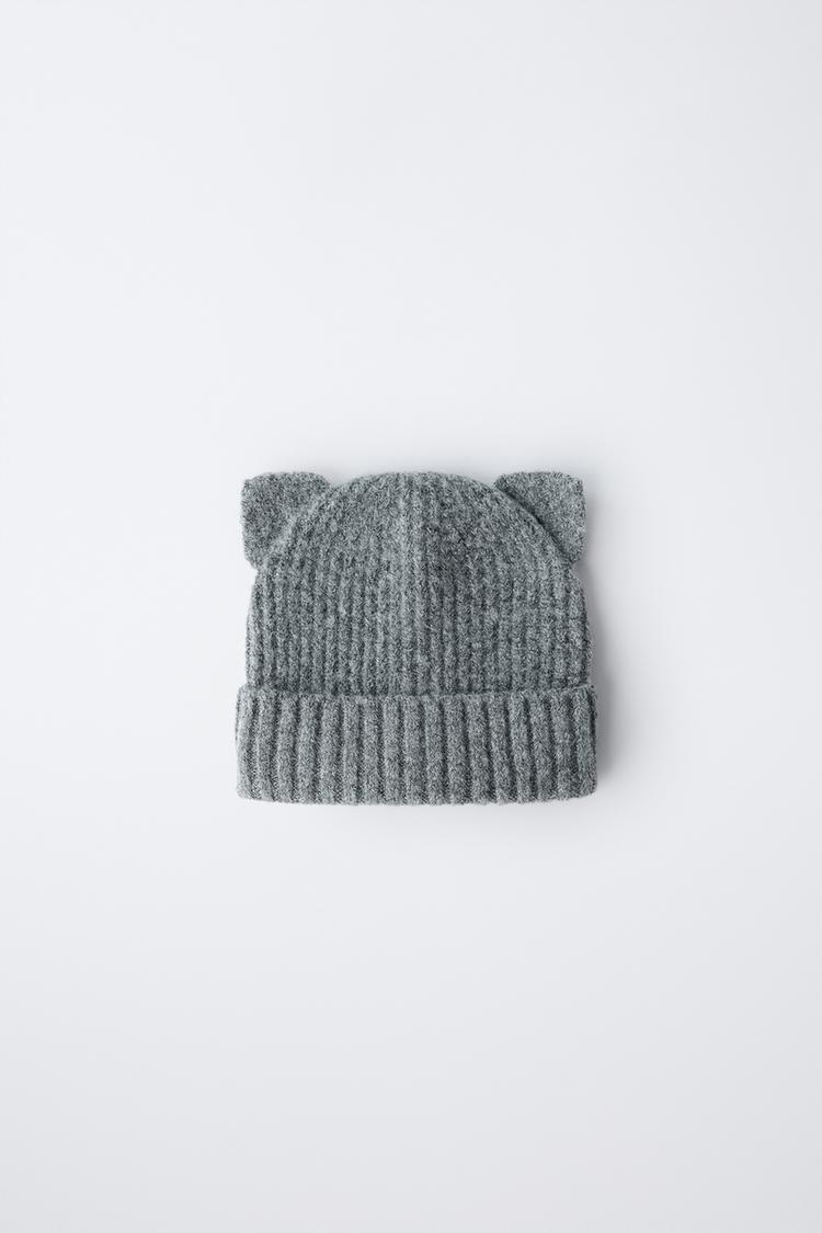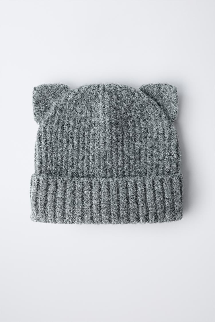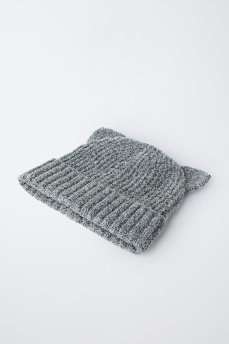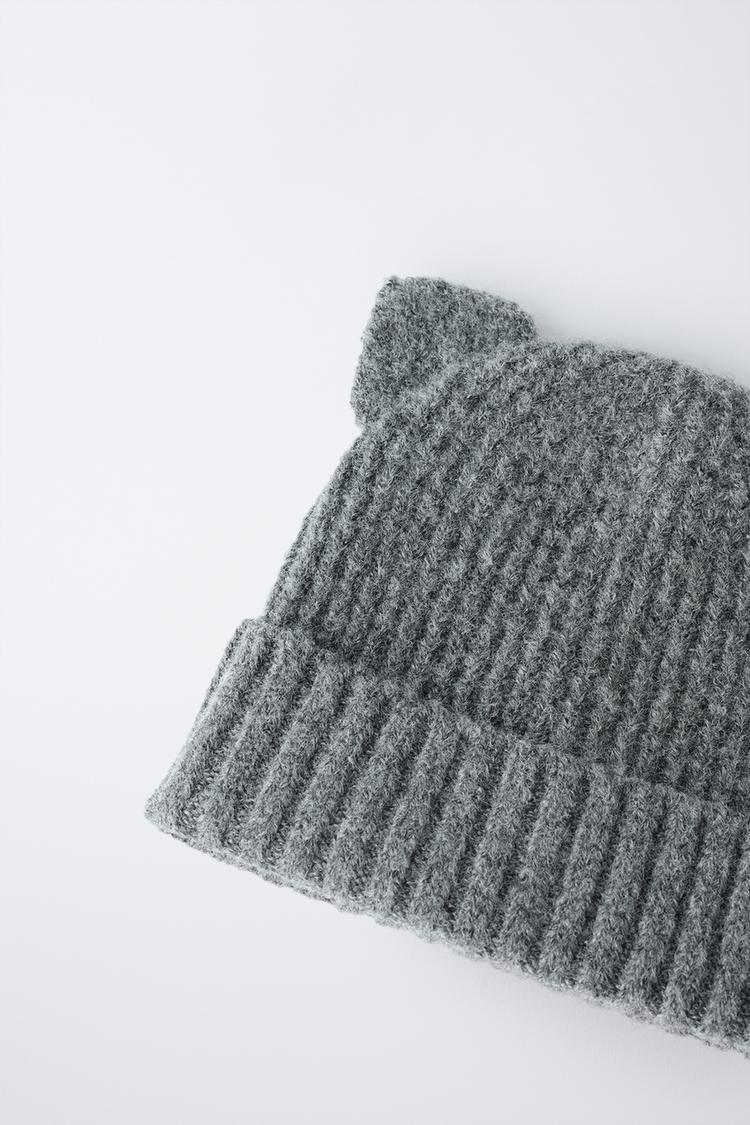 ZARA ТРИКОТАЖНАЯ ШАПКА С УШКАМИ, СЕРЫЙ МЕЛАНЖ