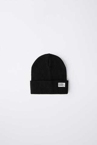 ZARA ТРИКОТАЖНАЯ ШАПКА В РУБЧИК С ЭТИКЕТКОЙ, ЧЕРНЫЙ