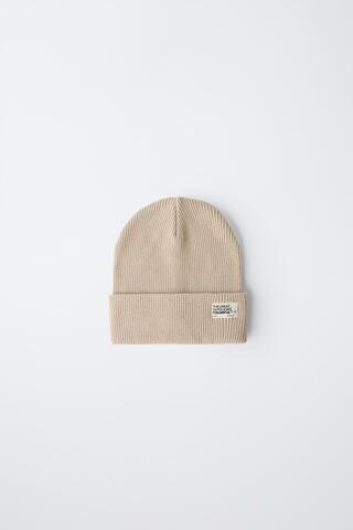 ZARA ТРИКОТАЖНАЯ ШАПКА В РУБЧИК С ЭТИКЕТКОЙ, ЦВЕТ ЛЬДА