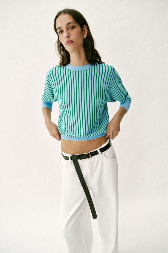ZARA ТРИКОТАЖНАЯ ТОЛСТОВКА В ПОЛОСКУ, РАЗНОЦВЕТНЫЙ