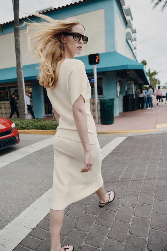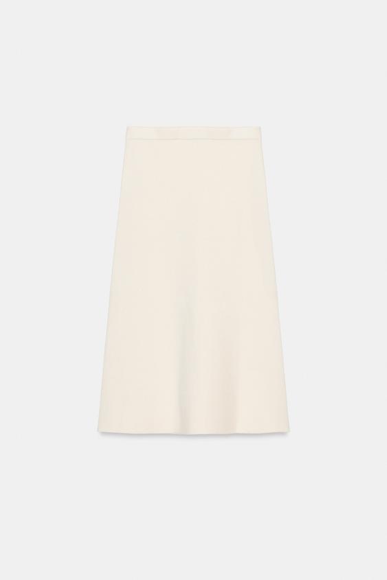 ZARA ТРИКОТАЖНАЯ ЮБКА МИДИ, ЭКРЮ
