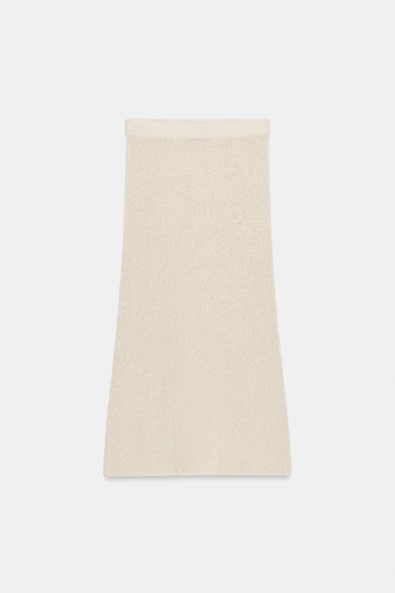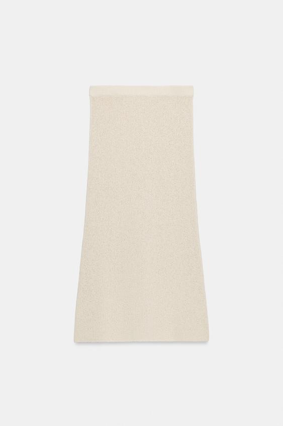 ZARA ТРИКОТАЖНАЯ ЮБКА МИДИ, ПЕСОЧНЫЙ