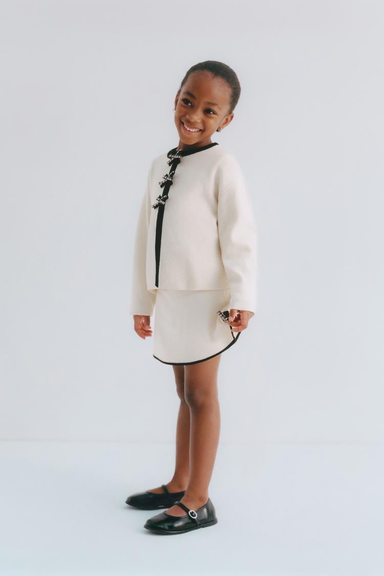 ZARA ТРИКОТАЖНАЯ ЮБКА С КОНТРАСТНЫМИ БАНТАМИ, ЭКРЮ
