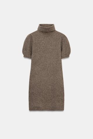 ZARA ТРИКОТАЖНОЕ МИНИ-ПЛАТЬЕ, СЕРОВАТО-КОРИЧНЕВЫЙ