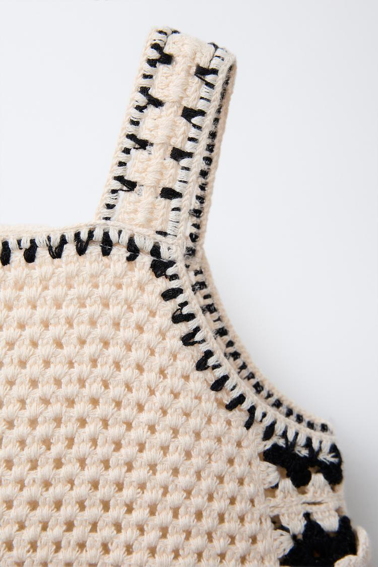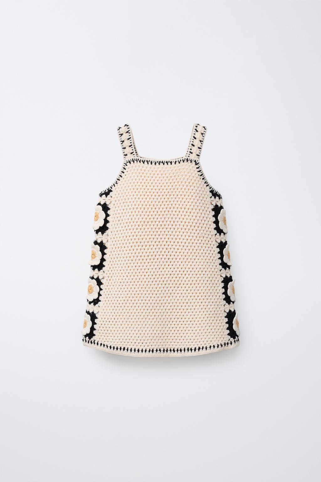 ZARA ТРИКОТАЖНОЕ ПЛАТЬЕ ИЗ КРУЖЕВА КРОШЕ С ЦВЕТОЧНЫМ УЗОРОМ, ЭКРЮ/ЧЕРНЫЙ