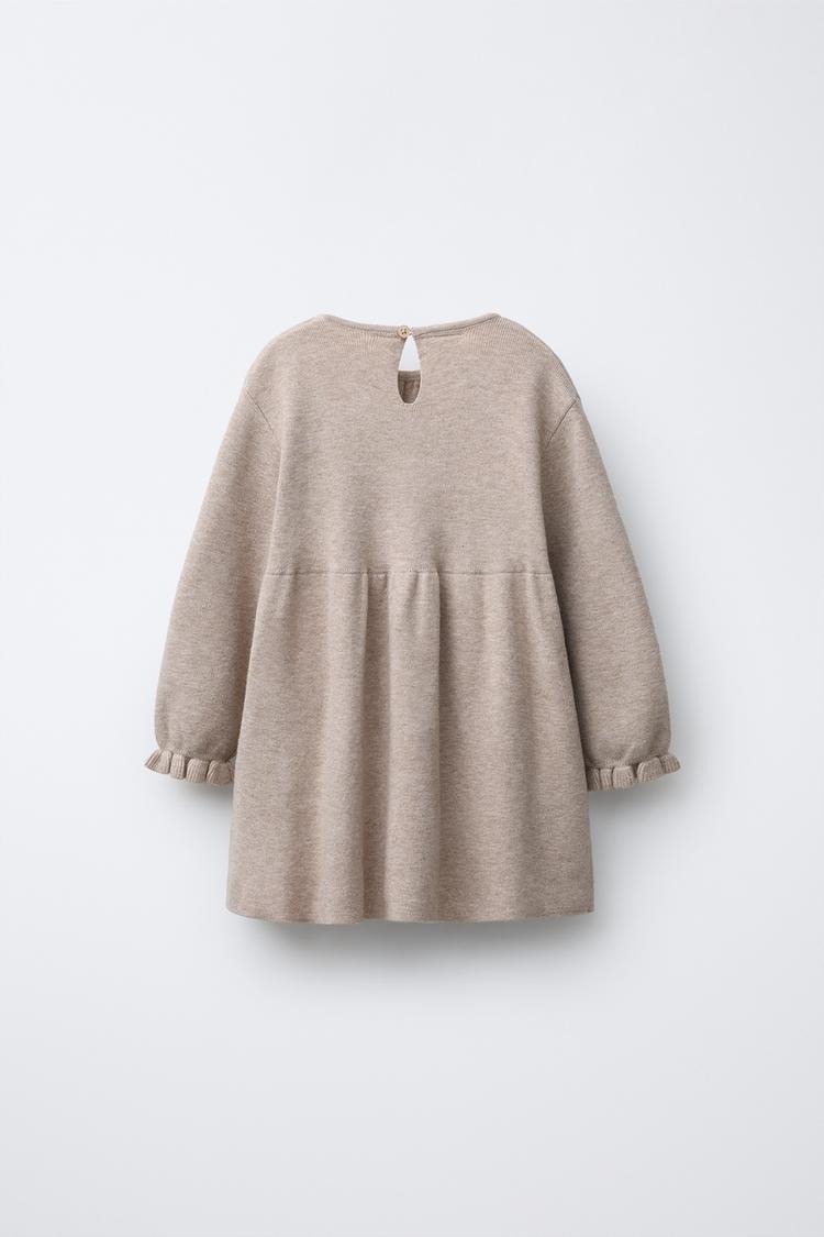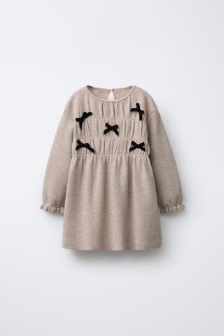 ZARA ТРИКОТАЖНОЕ ПЛАТЬЕ С БАНТАМИ, ПЕСОЧНЫЙ МЕЛАНЖ