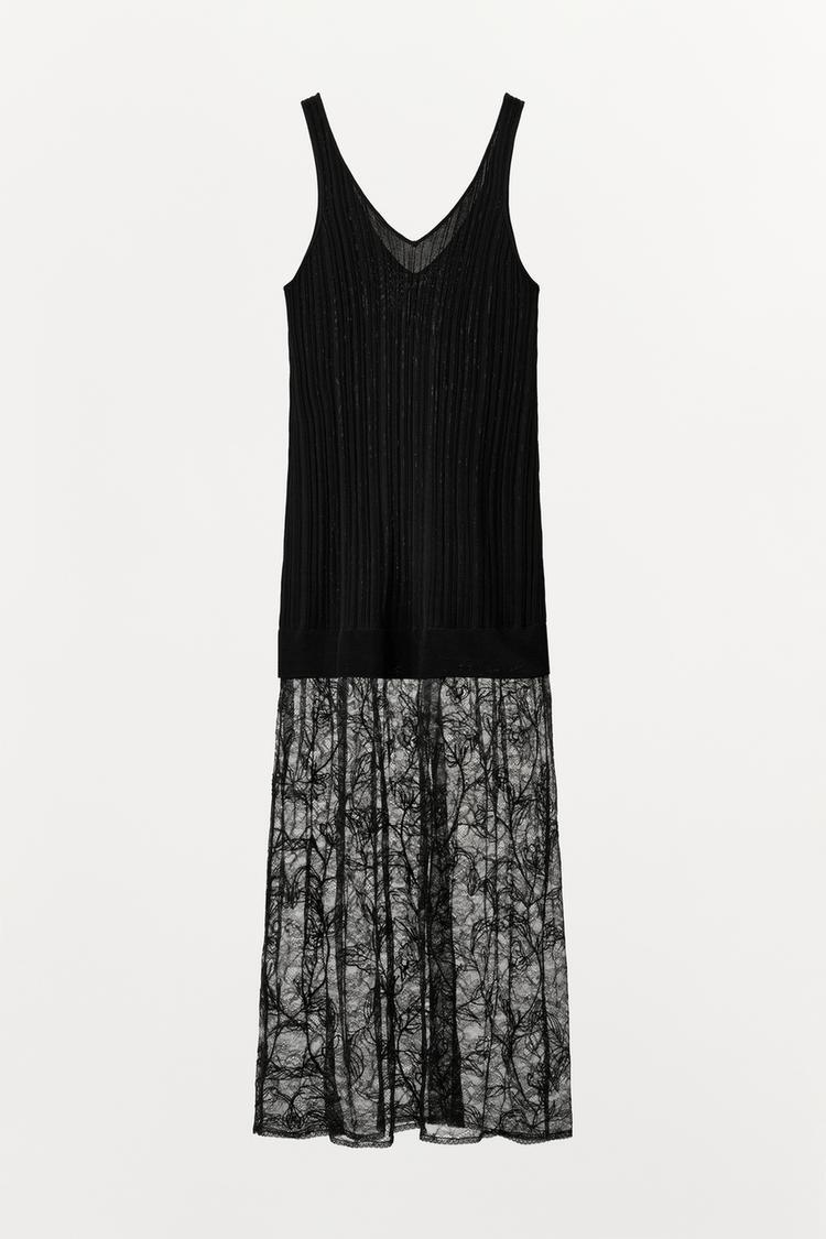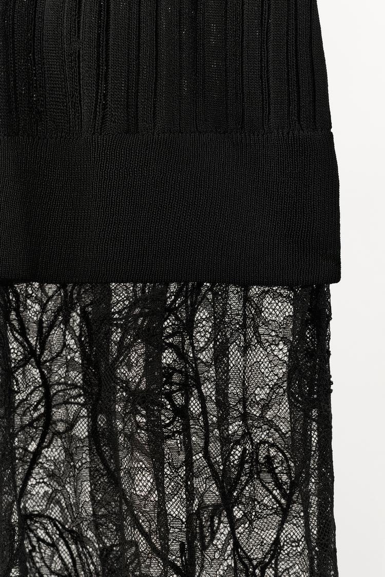 ZARA ТРИКОТАЖНОЕ ПЛАТЬЕ С КРУЖЕВОМ, ЧЕРНЫЙ