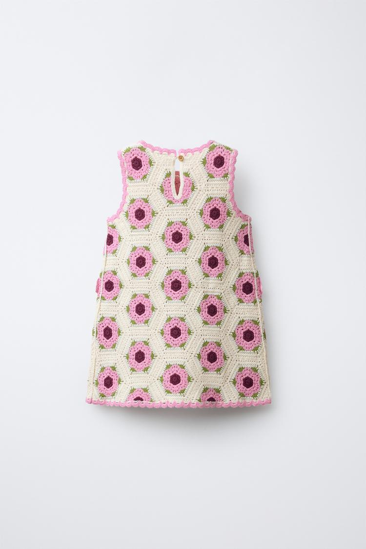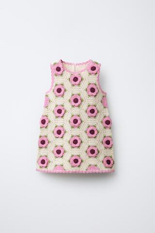 ZARA ТРИКОТАЖНОЕ ПЛАТЬЕ С КРУЖЕВОМ КРОШЕ, РОЗОВЫЙ