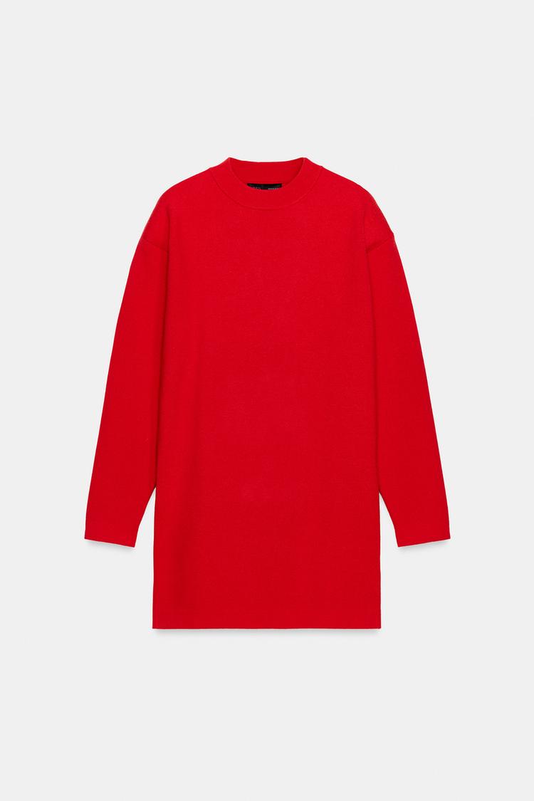 ZARA ТРИКОТАЖНОЕ ПЛАТЬЕ СО СПУЩЕННЫМИ ПЛЕЧАМИ, КРАСНЫЙ