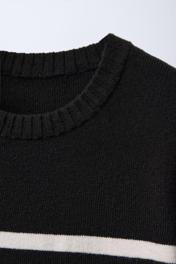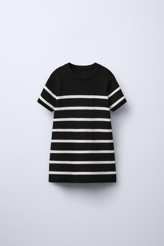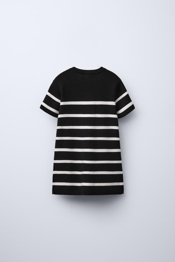 ZARA ТРИКОТАЖНОЕ ПЛАТЬЕ В ПОЛОСКУ, ЭКРЮ/ЧЕРНЫЙ