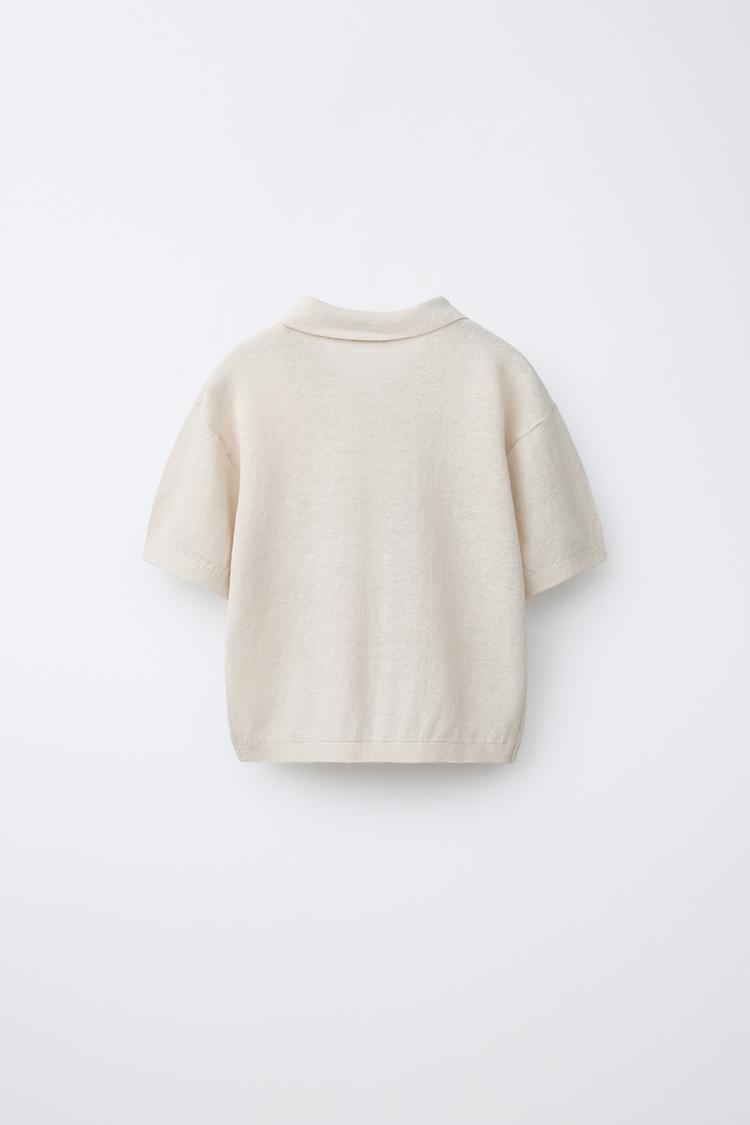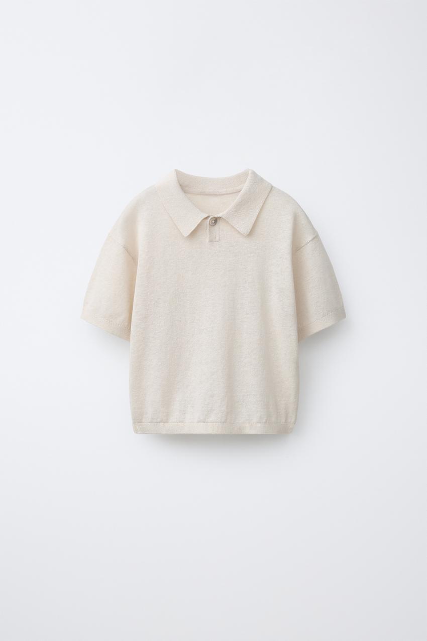 ZARA ТРИКОТАЖНОЕ ПОЛО ИЗ ХЛОПКА И ЛЬНА, ЭКРЮ