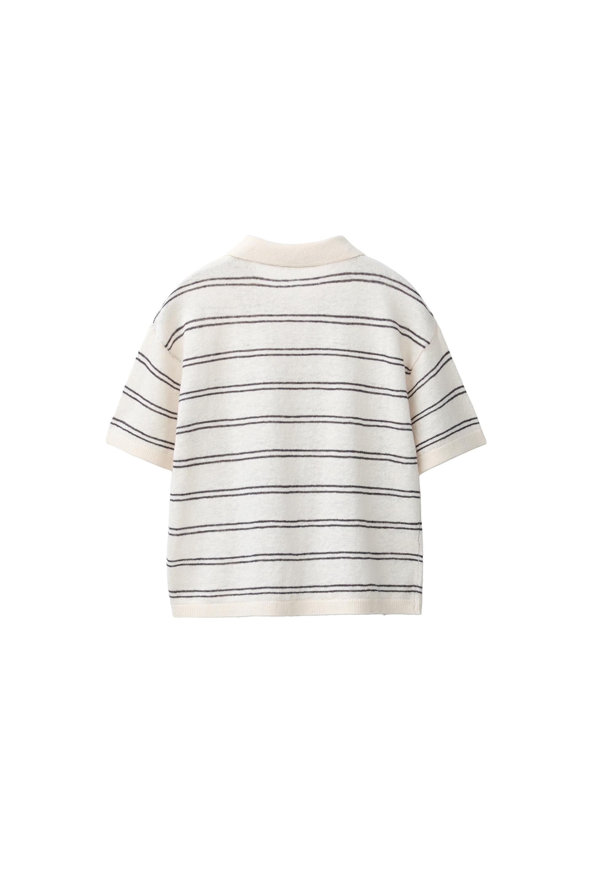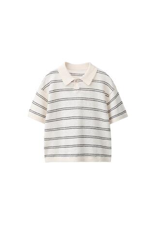 Вязаное поло с воротником-поло и короткими рукавами. Ткань из 55% льна и 45% хлопка.