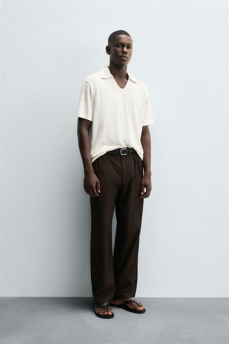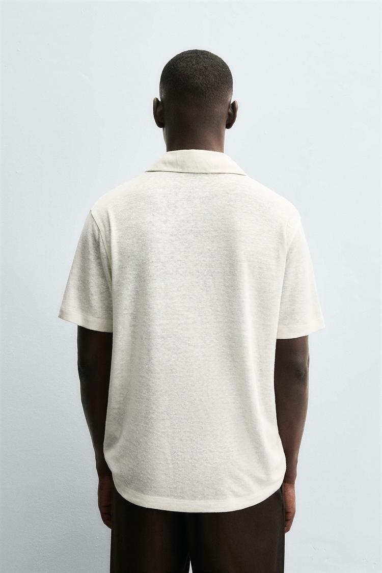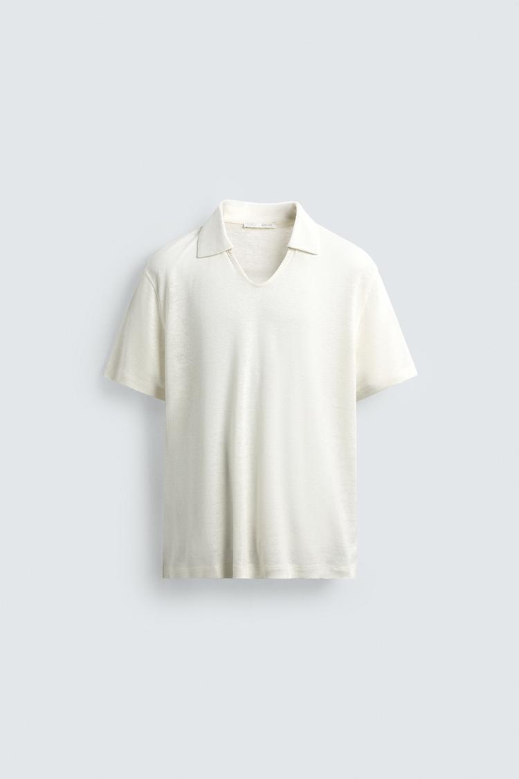 ZARA ТРИКОТАЖНОЕ ПОЛО ИЗ КОНОПЛИ И ВИСКОЗЫ, ЭКРЮ