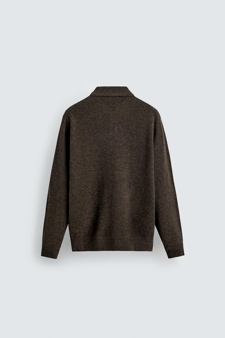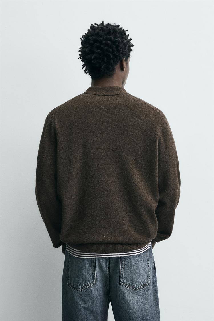 ZARA ТРИКОТАЖНОЕ ПОЛО ИЗ ШЕРСТИ И КАШЕМИРА, КОРИЧНЕВЫЙ МЕЛАНЖ