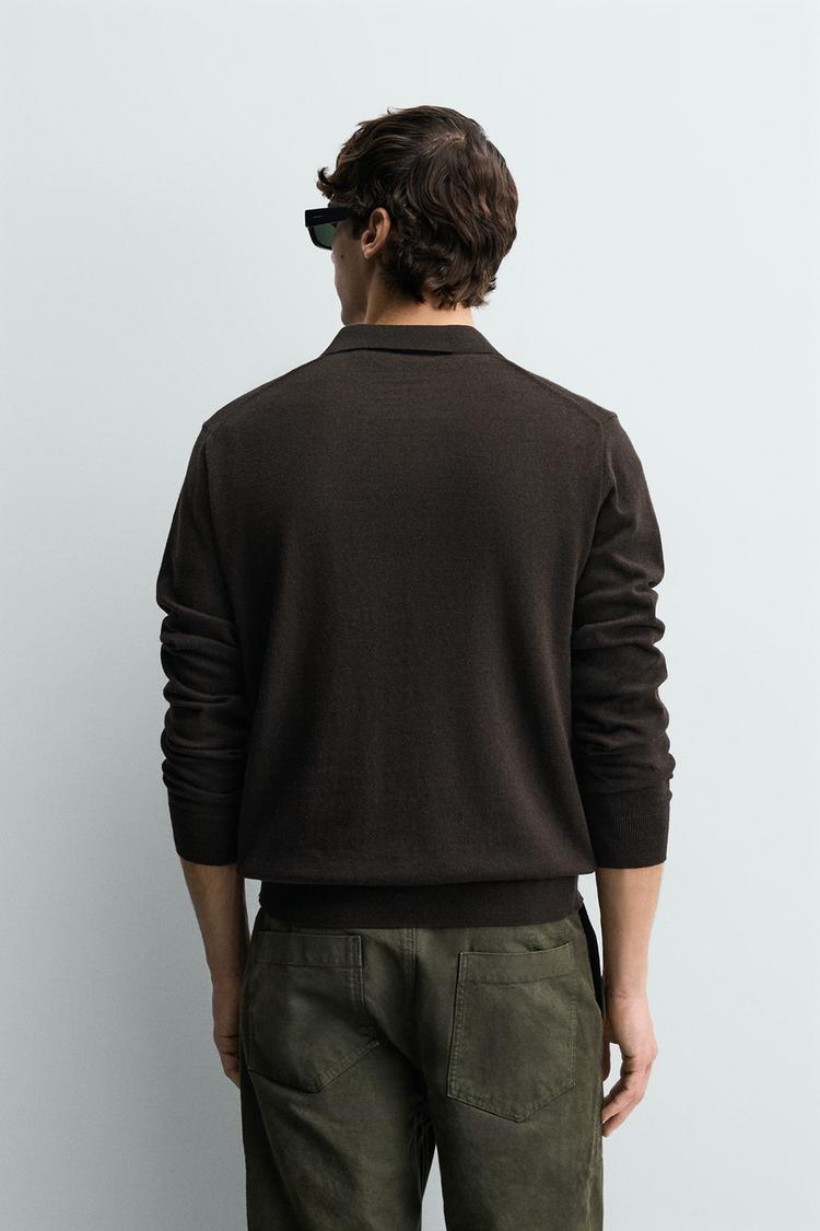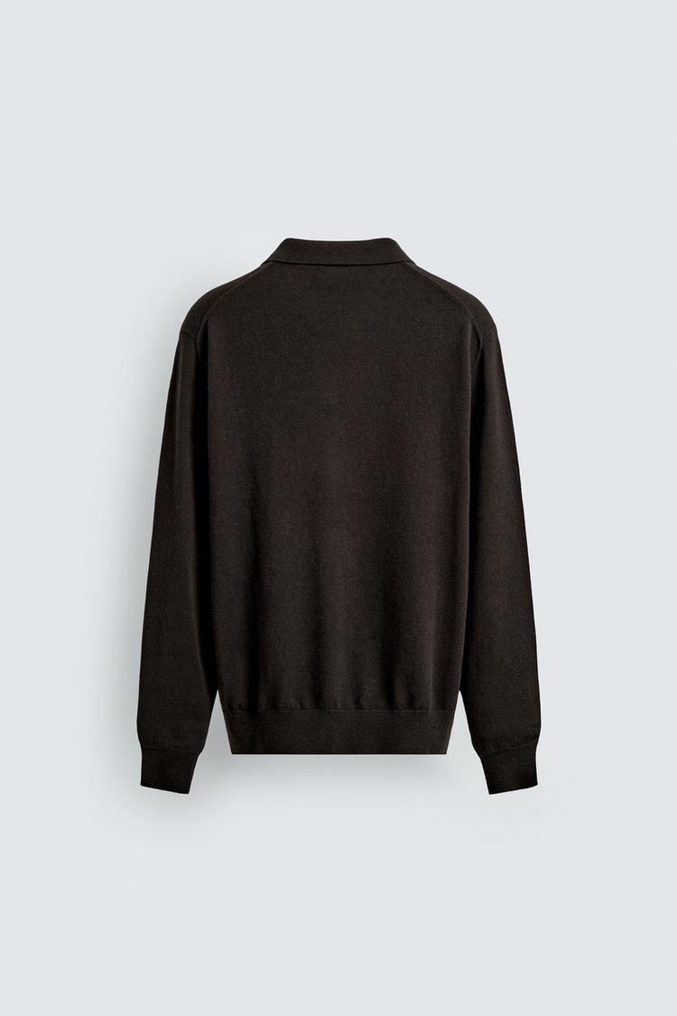 ZARA ТРИКОТАЖНОЕ ПОЛО КЛАССИЧЕСКОГО КРОЯ, ШОКОЛАДНЫЙ