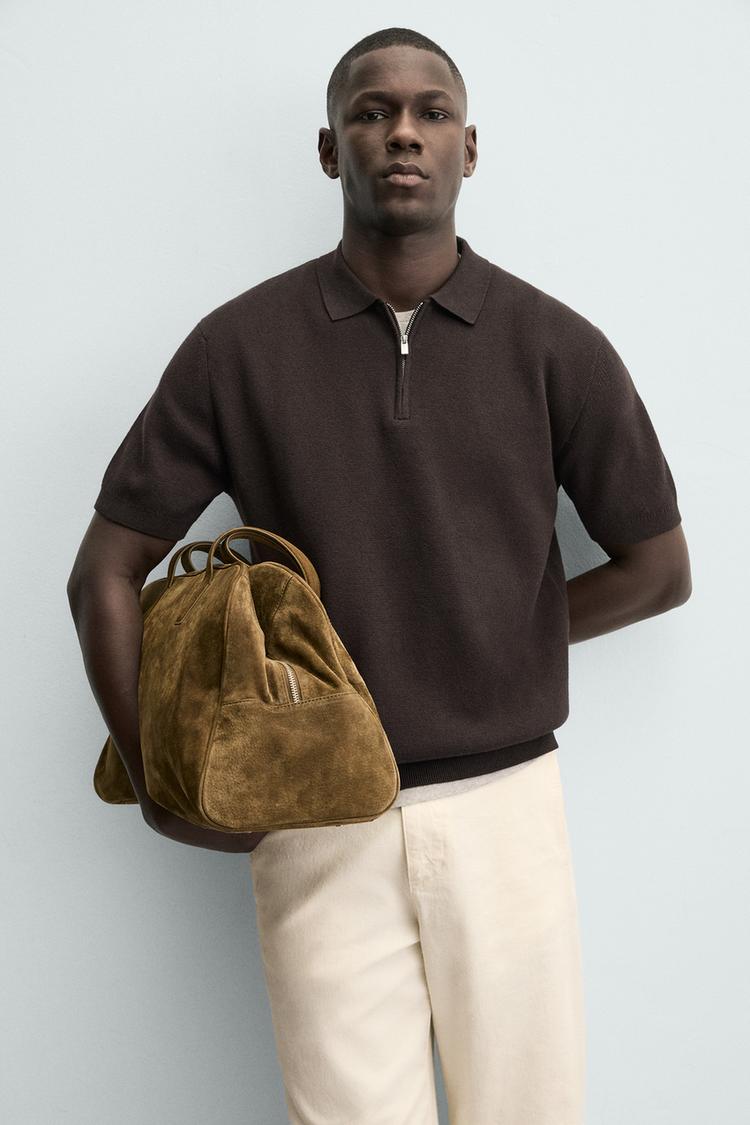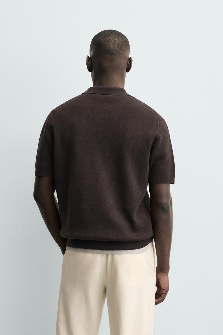 ZARA ТРИКОТАЖНОЕ ПОЛО НА МОЛНИИ, ШОКОЛАДНЫЙ