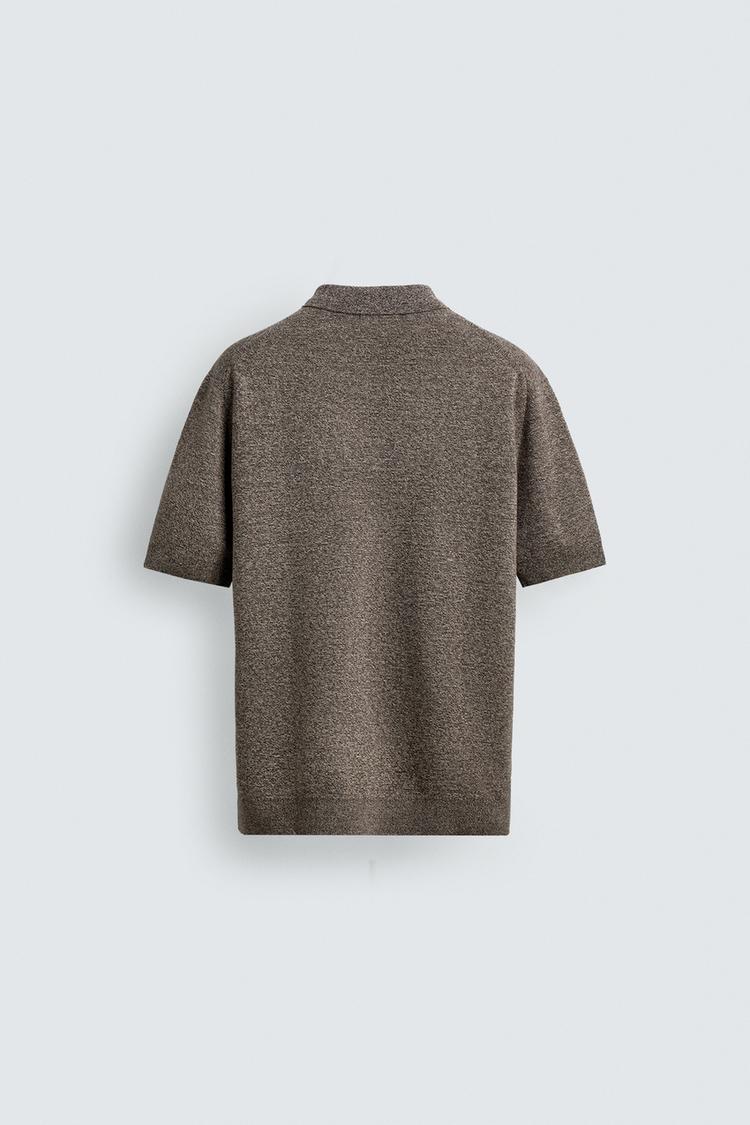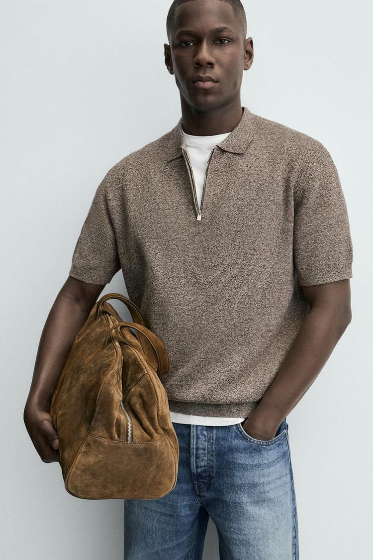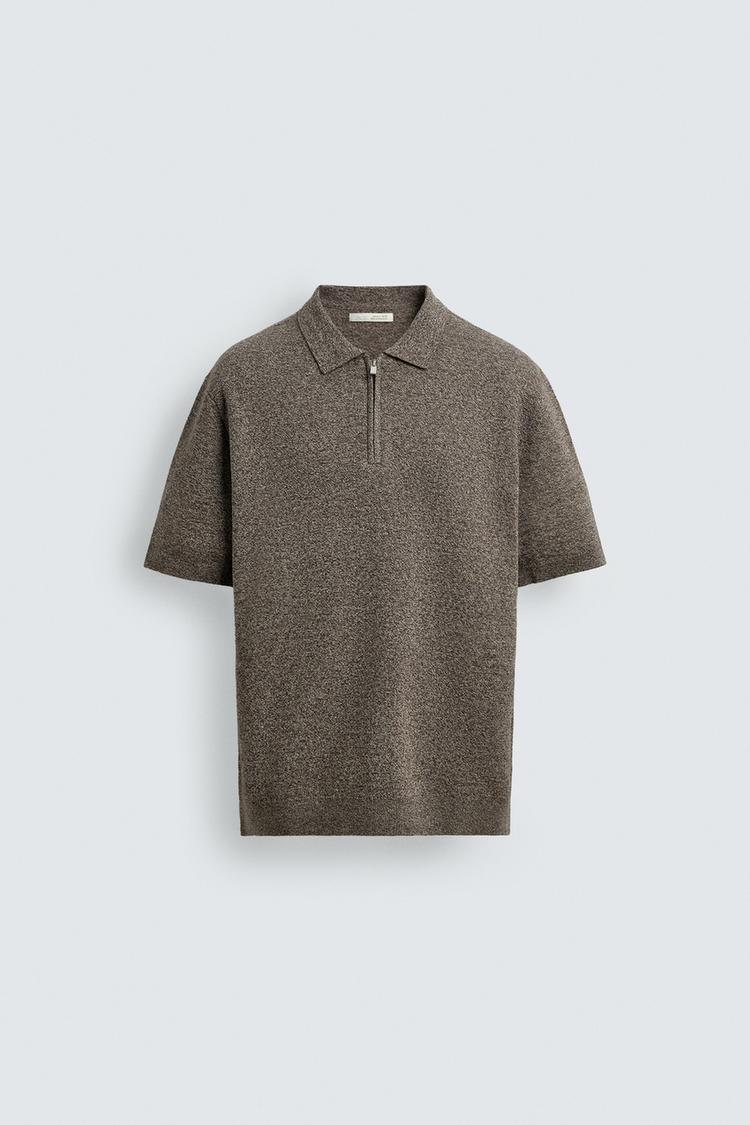 ZARA ТРИКОТАЖНОЕ ПОЛО НА МОЛНИИ, КОРИЧНЕВЫЙ/БЕЛЫЙ