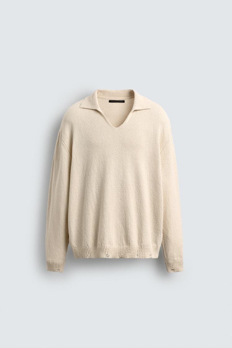 ZARA ТРИКОТАЖНОЕ ПОЛО С ЭФФЕКТОМ ПОТЕРТОСТИ, ЭКРЮ