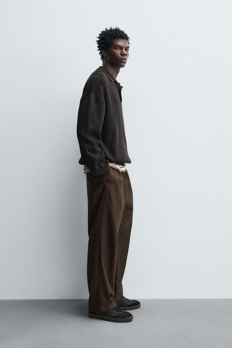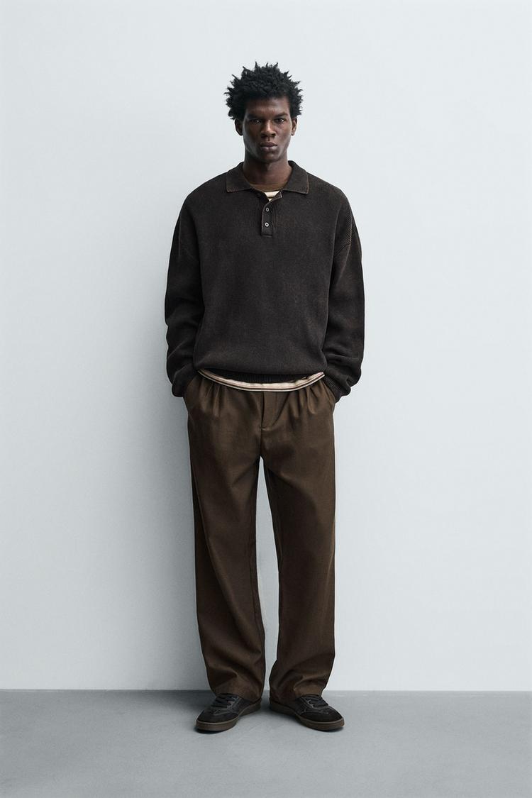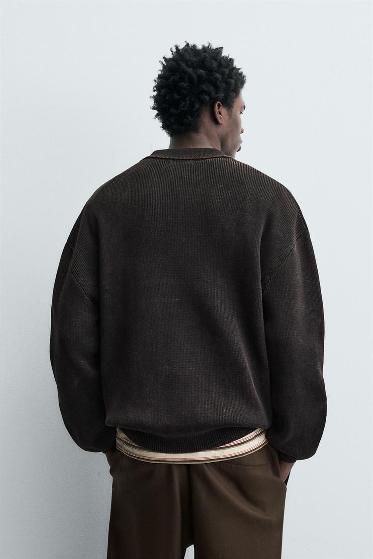 ZARA ТРИКОТАЖНОЕ ПОЛО С ЭФФЕКТОМ ПОТЕРТОСТИ, КОРИЧНЕВЫЙ