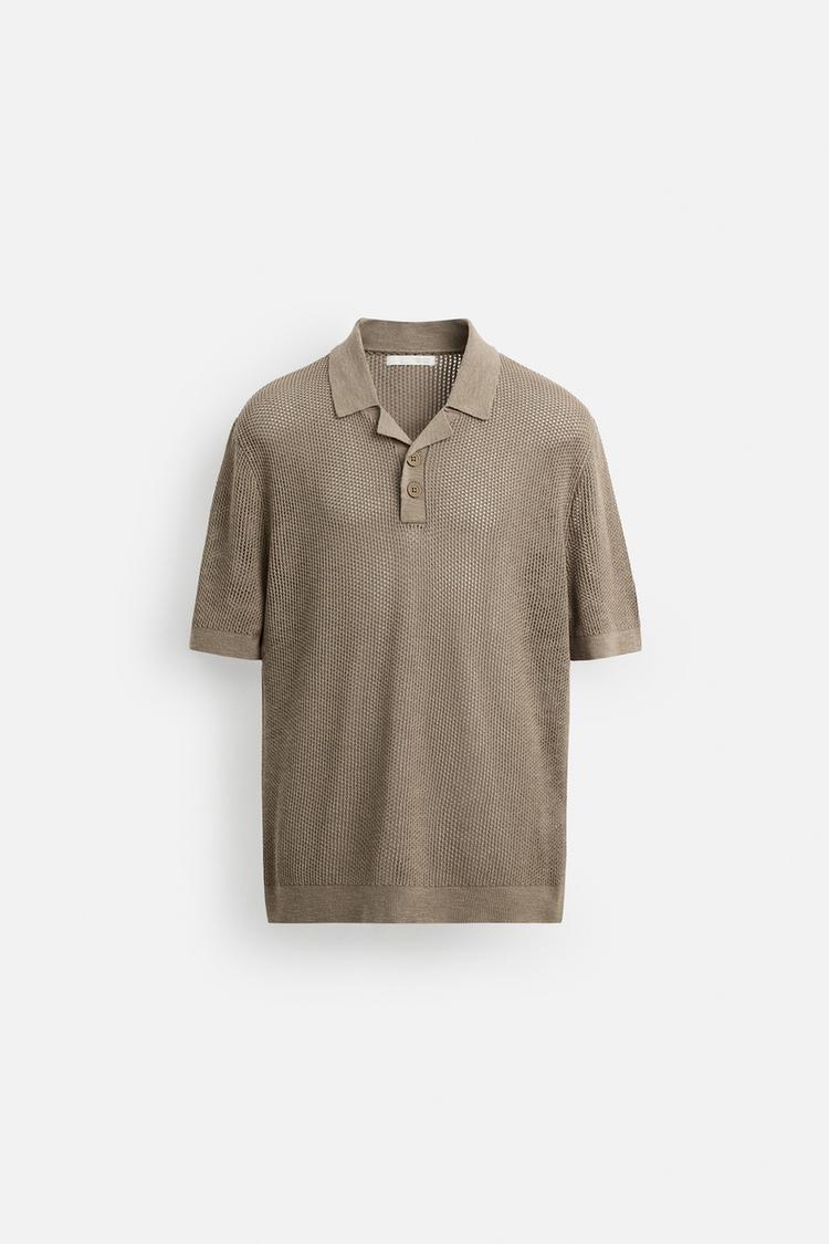ZARA ТРИКОТАЖНОЕ ПОЛО С УЗОРОМ, БЕЖЕВЫЙ