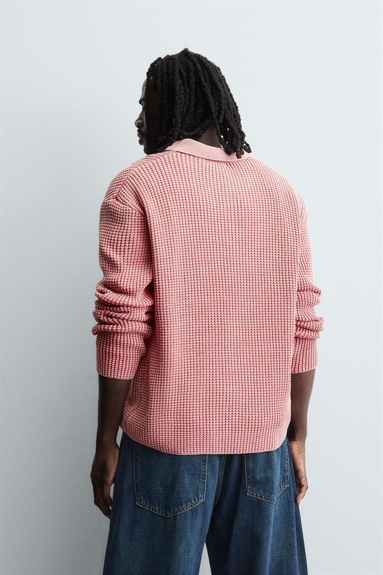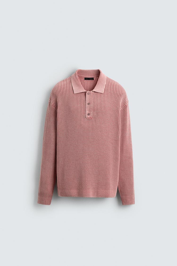 ZARA ТРИКОТАЖНОЕ ПОЛО С ВАФЕЛЬНОЙ СТРУКТУРОЙ, РОЗОВЫЙ