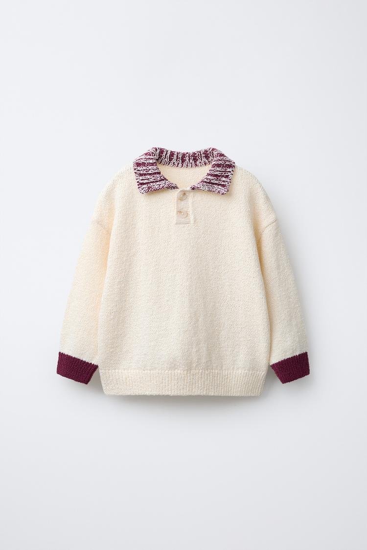 ZARA ТРИКОТАЖНОЕ ПОЛО С ВОРОТНИКОМ В РУБЧИК, ЭКРЮ/ГРАНАТОВЫЙ