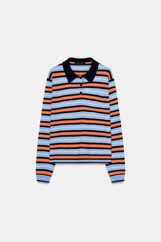 ZARA ТРИКОТАЖНОЕ ПОЛО В ПОЛОСКУ, РАЗНОЦВЕТНЫЙ