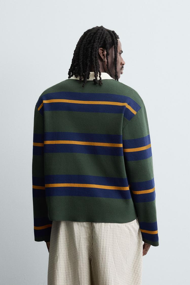 ZARA ТРИКОТАЖНОЕ ПОЛО В ПОЛОСКУ С КОНТРАСТНЫМ ВОРОТНИКОМ, ЗЕЛЕНЫЙ