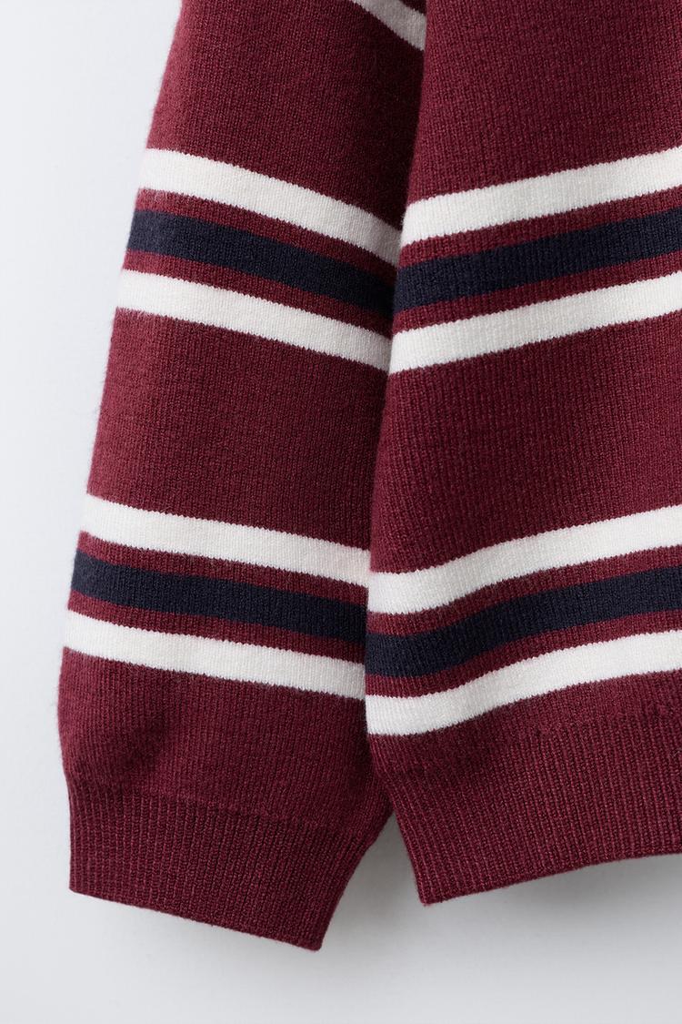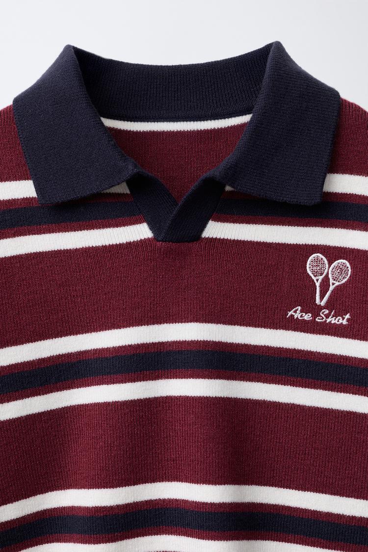 ZARA ТРИКОТАЖНОЕ ПОЛО В ПОЛОСКУ С ВЫШИВКОЙ, МОРСКОЙ СИНИЙ