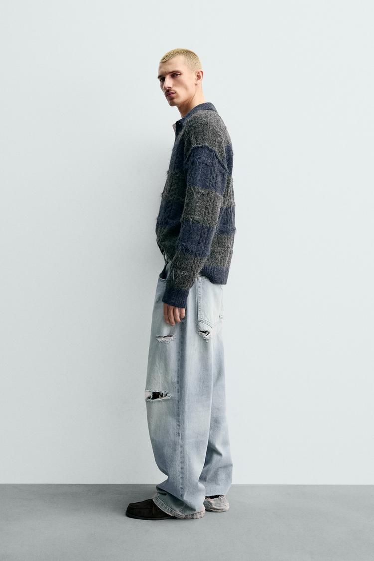 ZARA ТРИКОТАЖНОЕ ЖАККАРДОВОЕ ПОЛО В ПОЛОСКУ, АНТРАЦИТОВО-СЕРЫЙ