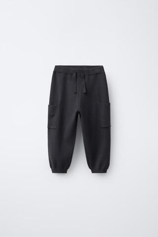 ZARA ТРИКОТАЖНЫЕ БРЮКИ-ДЖОГГЕРЫ КАРГО, СЕРО-СИНИЙ