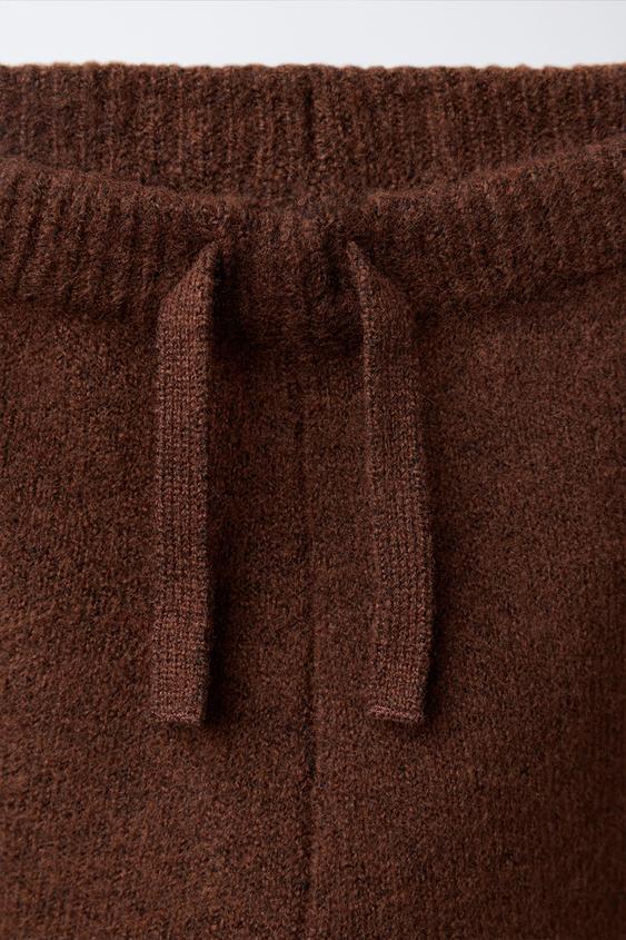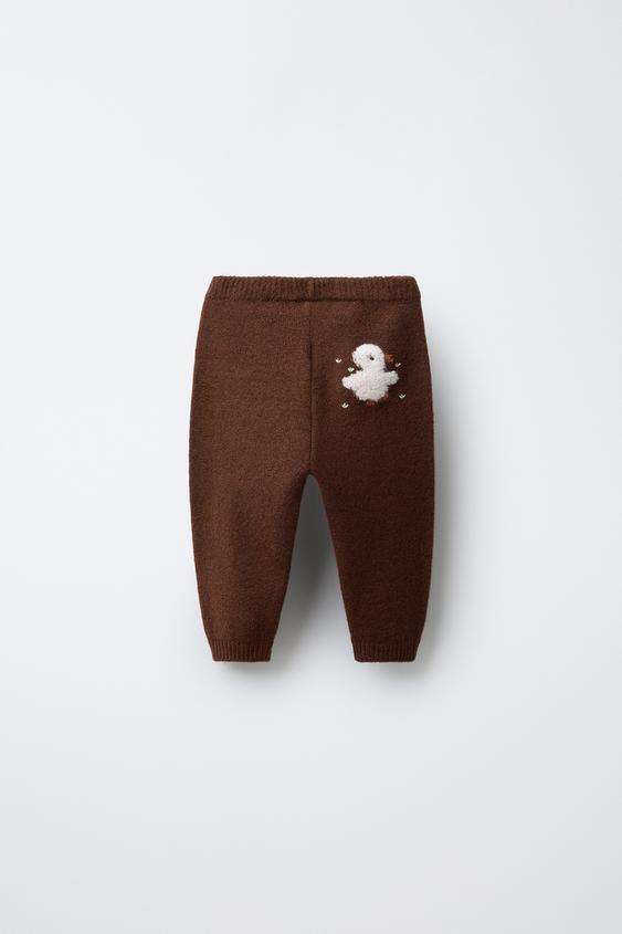 ZARA ТРИКОТАЖНЫЕ БРЮКИ-ДЖОГГЕРЫ С ВЫШИТЫМ УТЕНКОМ, КОРИЧНЕВЫЙ