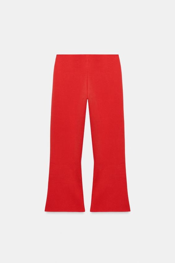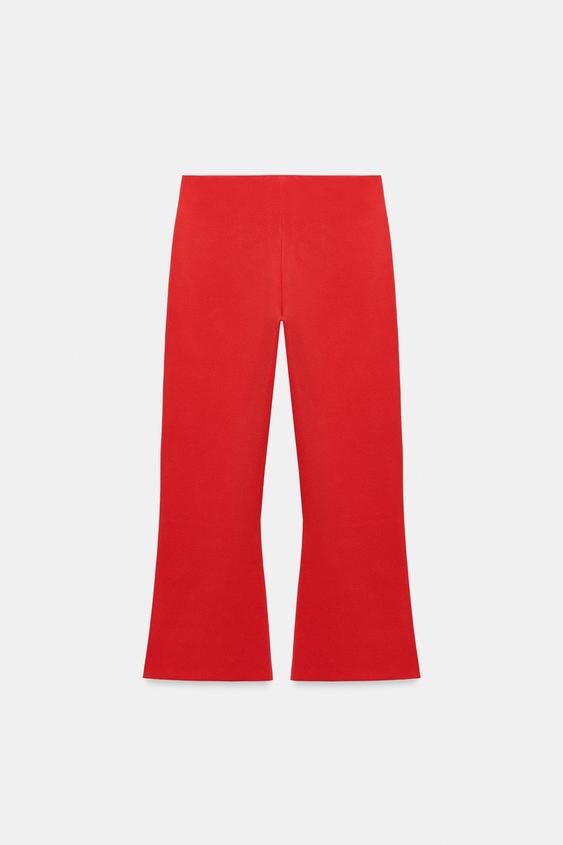 ZARA ТРИКОТАЖНЫЕ БРЮКИ FLARE, КРАСНЫЙ/КОРАЛЛОВЫЙ