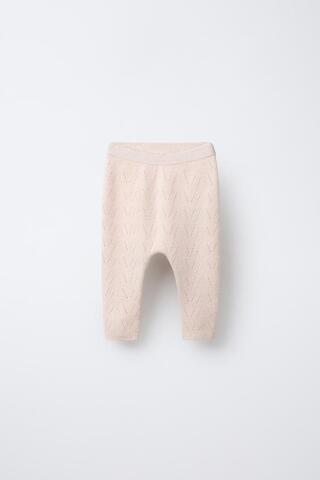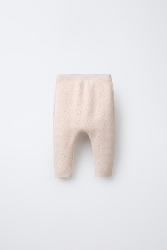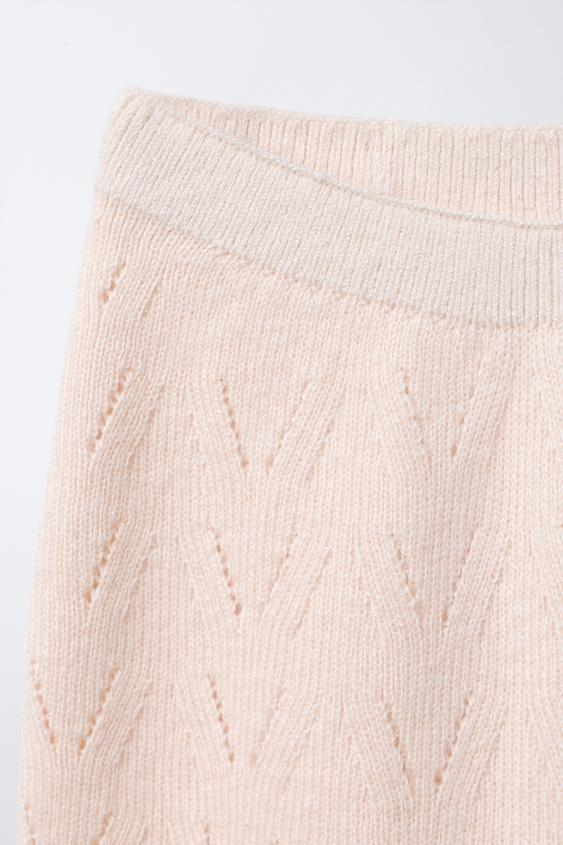 ZARA ТРИКОТАЖНЫЕ БРЮКИ ИЗ ХЛОПКА И ШЕРСТИ, СВЕТЛО-БЕЖЕВЫЙ