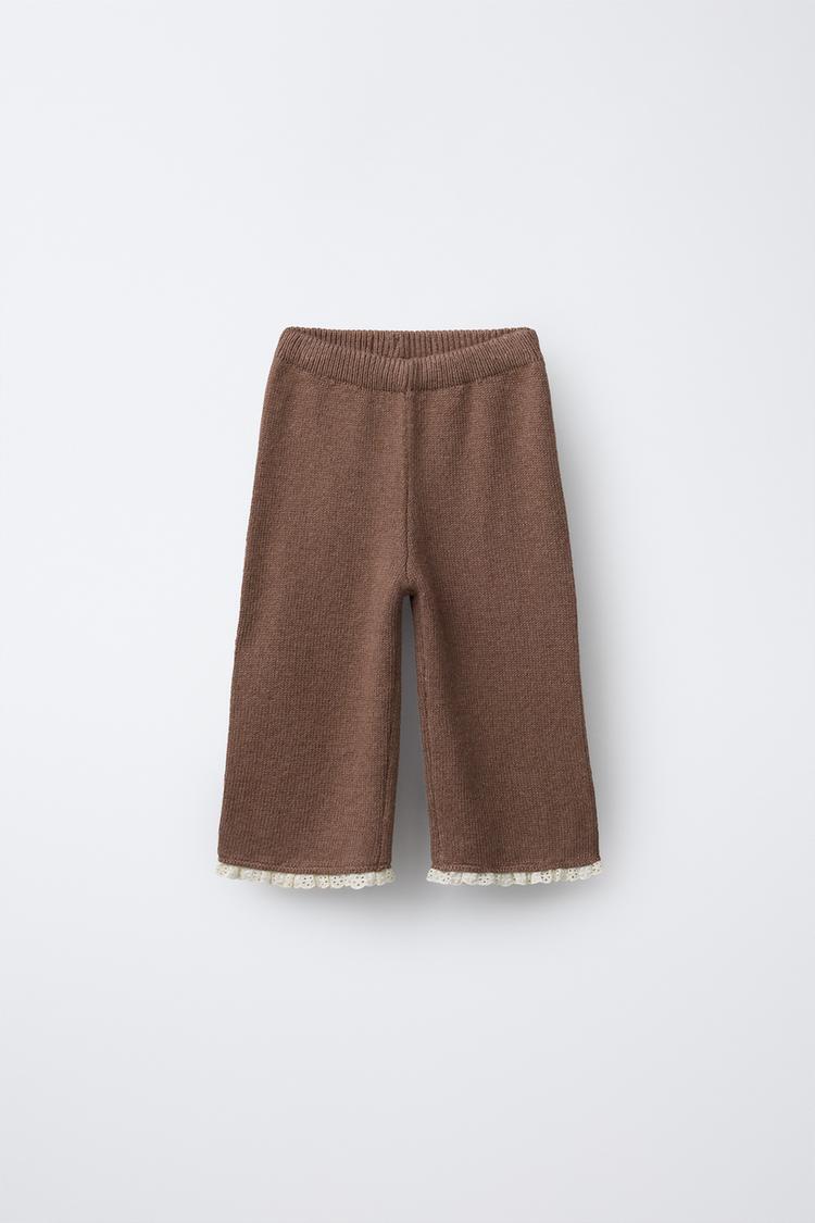 ZARA ТРИКОТАЖНЫЕ БРЮКИ-КЮЛОТЫ С КРУЖЕВОМ, РОЗОВАТЫЙ