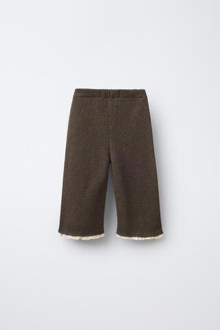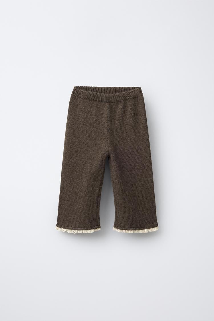 ZARA ТРИКОТАЖНЫЕ БРЮКИ-КЮЛОТЫ С КРУЖЕВОМ, СЕРОВАТО-КОРИЧНЕВЫЙ