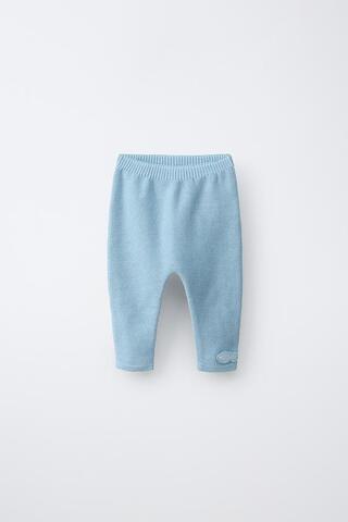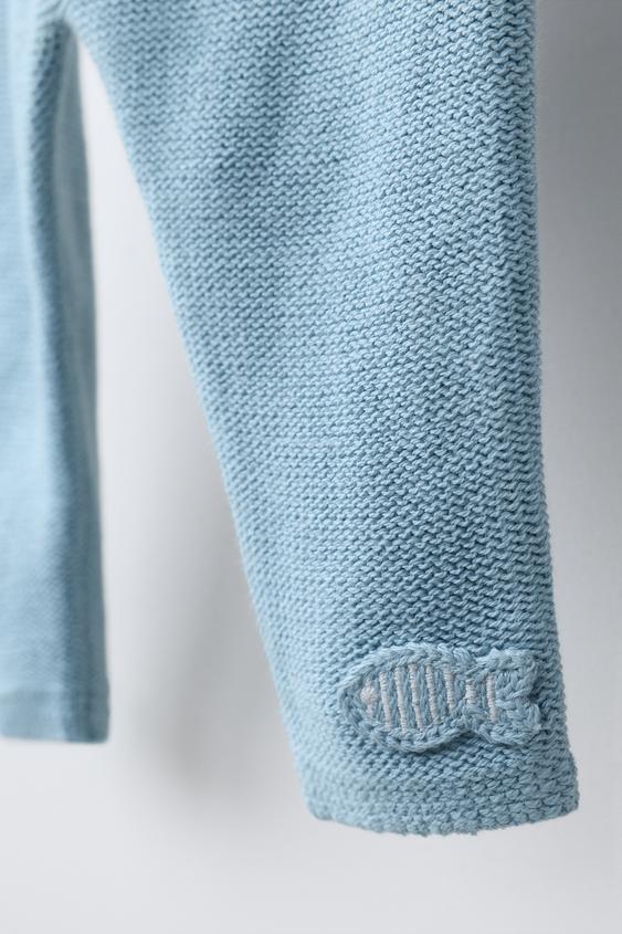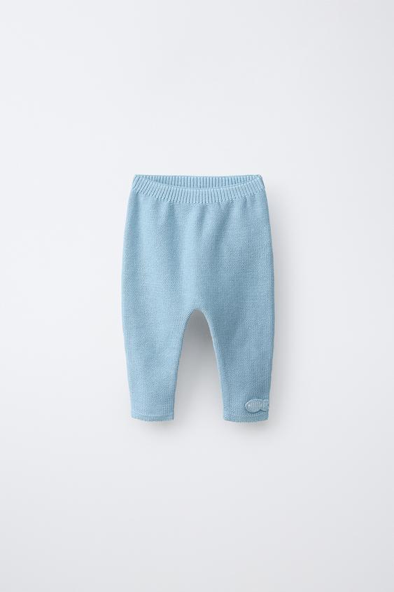 ZARA ТРИКОТАЖНЫЕ БРЮКИ С АППЛИКАЦИЕЙ РЫБЫ, СВЕТЛО-БИРЮЗОВЫЙ