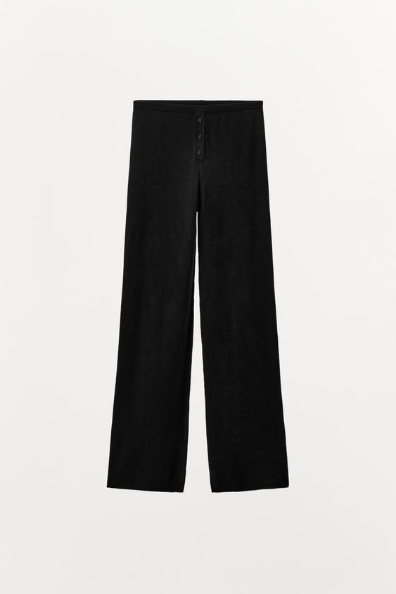ZARA ТРИКОТАЖНЫЕ БРЮКИ С ПУГОВИЦАМИ, ЧЕРНЫЙ