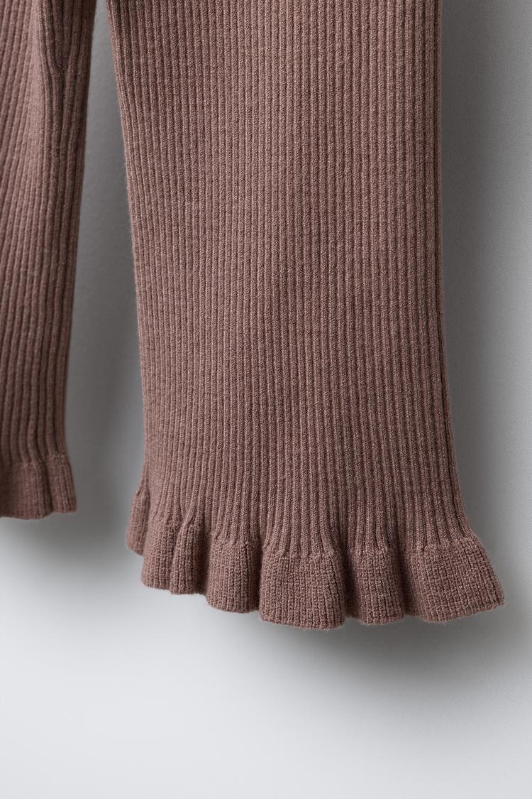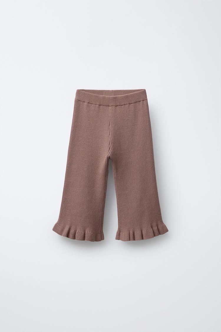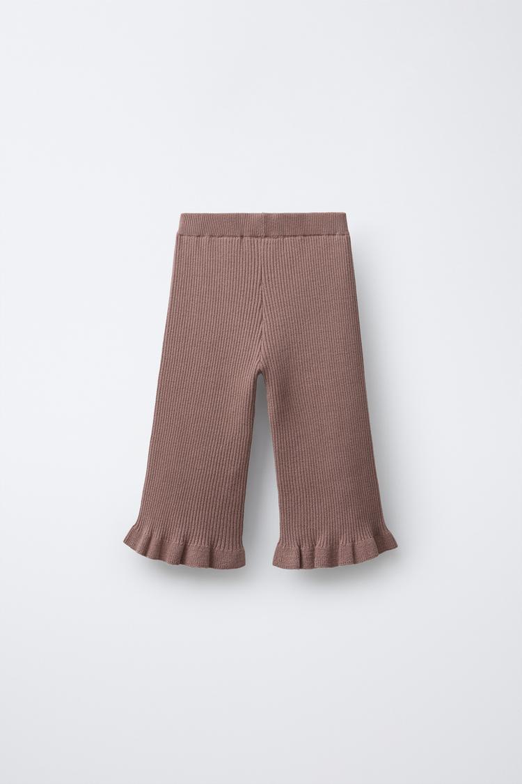 ZARA ТРИКОТАЖНЫЕ БРЮКИ С ВОЛАНАМИ, ПУДРОВО-РОЗОВЫЙ