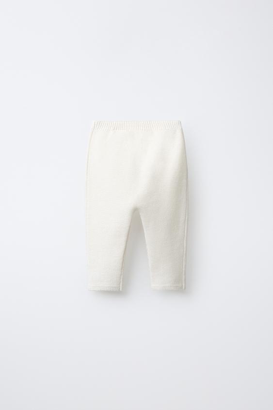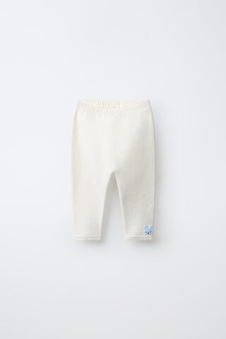 ZARA ТРИКОТАЖНЫЕ БРЮКИ С ЗАПЛАТКОЙ «КРОЛИК», ЭКРЮ