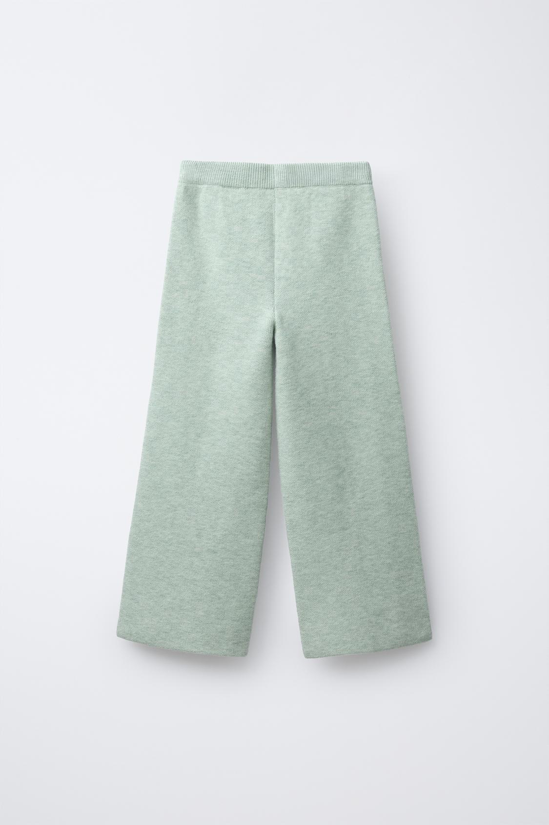 ZARA ТРИКОТАЖНЫЕ БРЮКИ WIDE LEG, СВЕТЛО-ЗЕЛЕНЫЙ